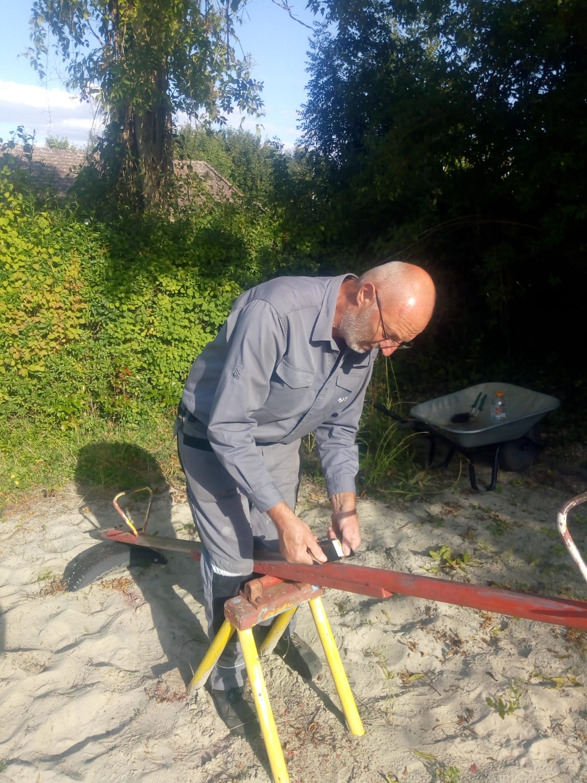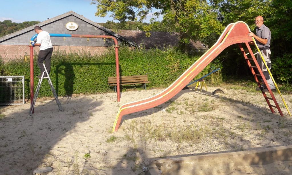 Im ersten Schritt haben wir also alle Spielgeräte sorgfältig abgeschliffen, defekte Teile ausgetauscht und alles mit